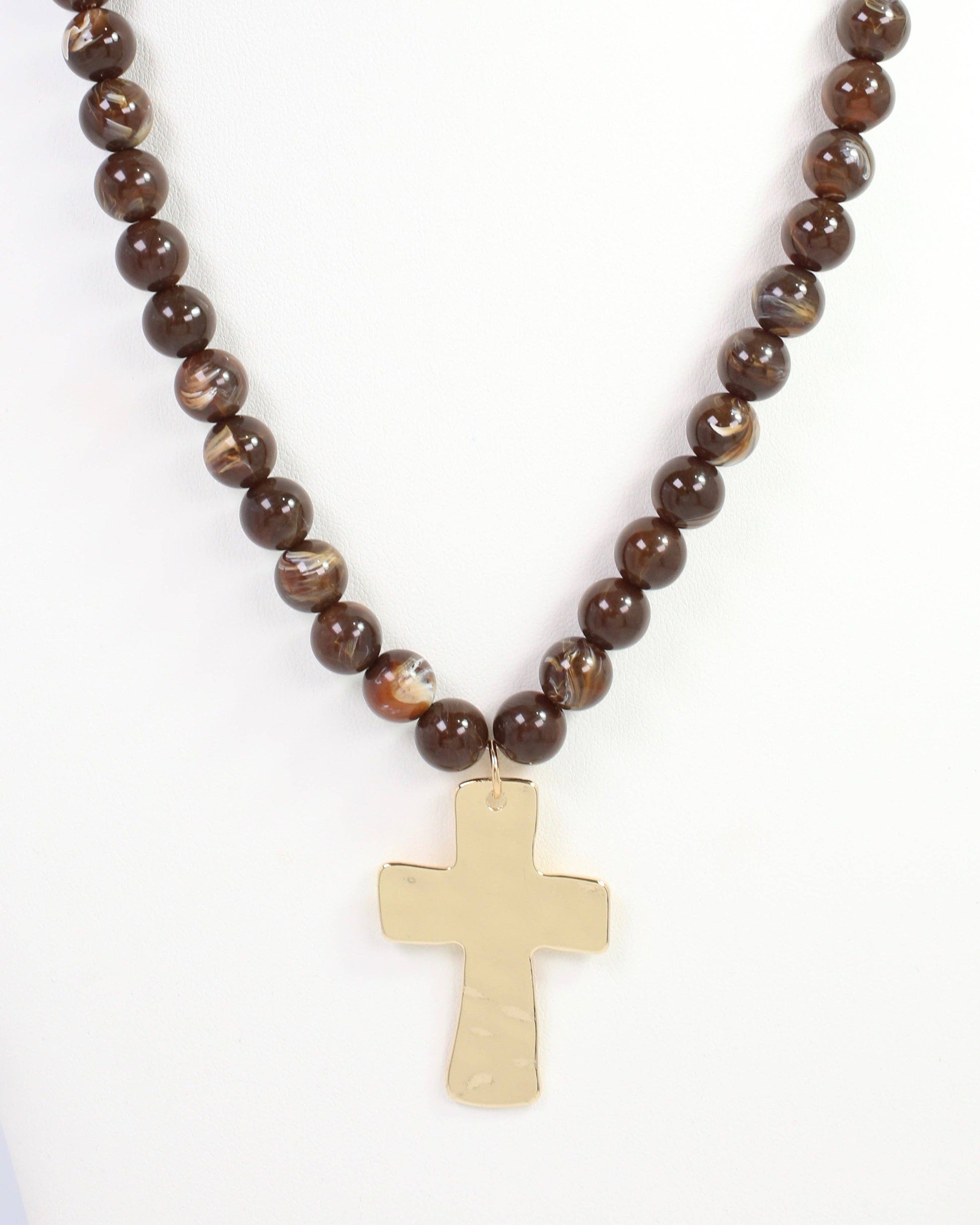 Bakersfield Beaded Cross Necklace Brown